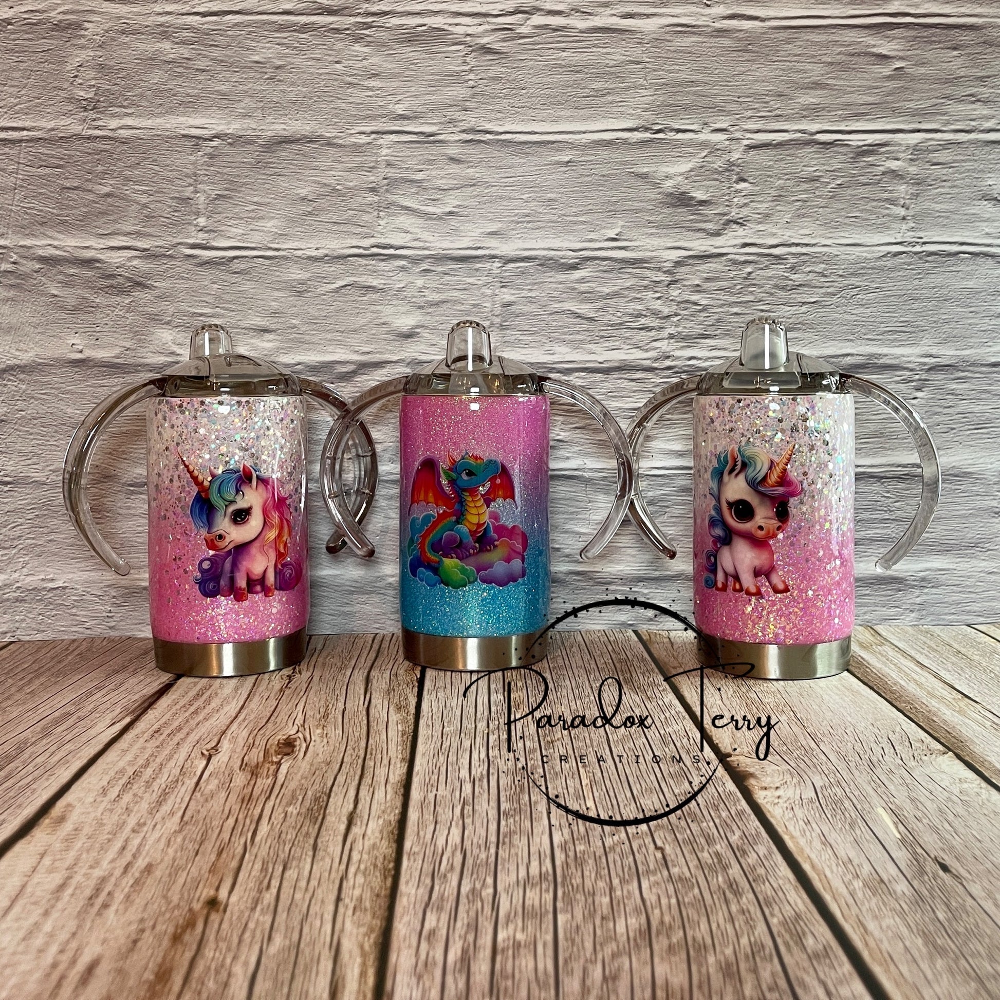 Double walled and vacuum insulated. These cute 12 ounce sippy cups are designed to be held easily with little hands.