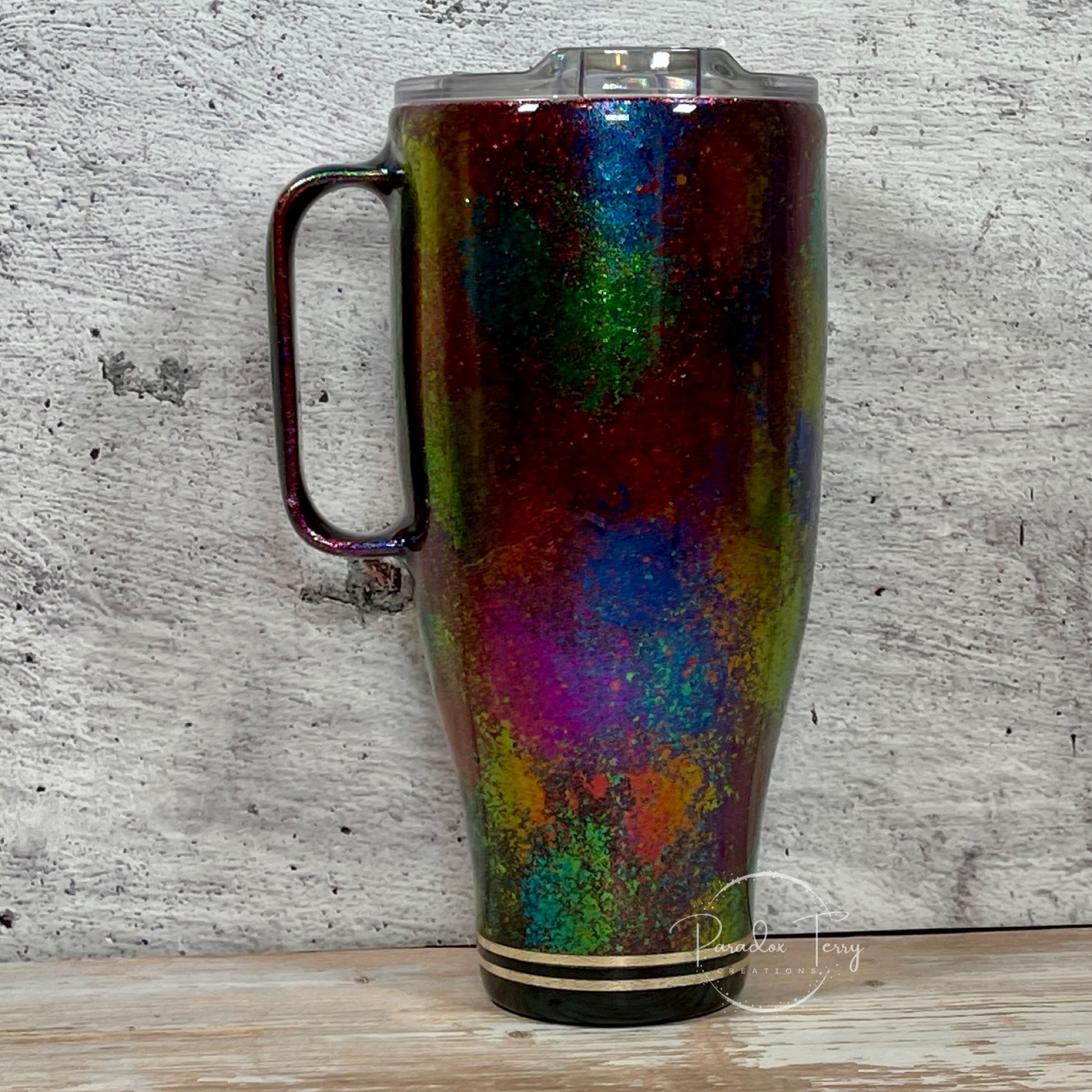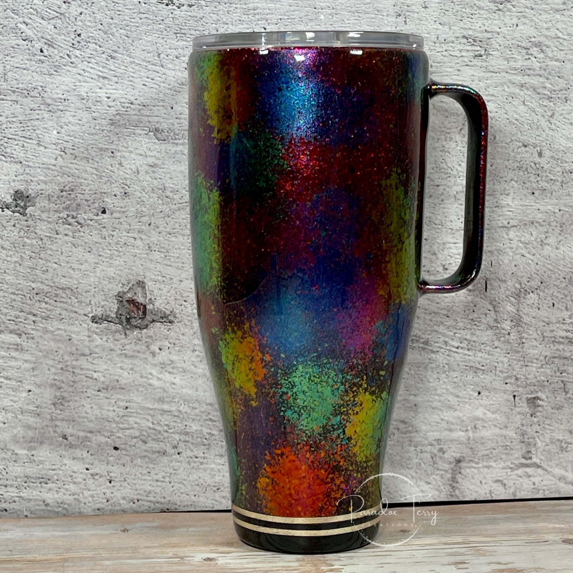 This tumbler is able to hold 30 ounces and still fit in a cup holder.